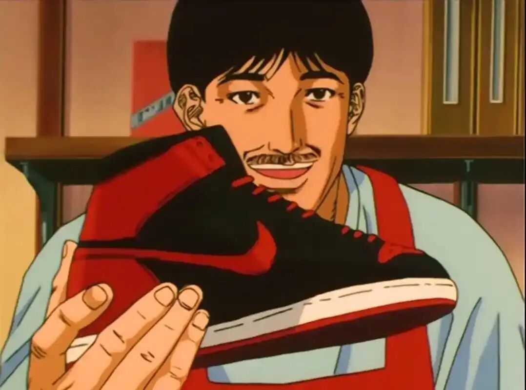 当年,樱木花道加入了篮球队,但是却连一双像样的篮球鞋都没有。