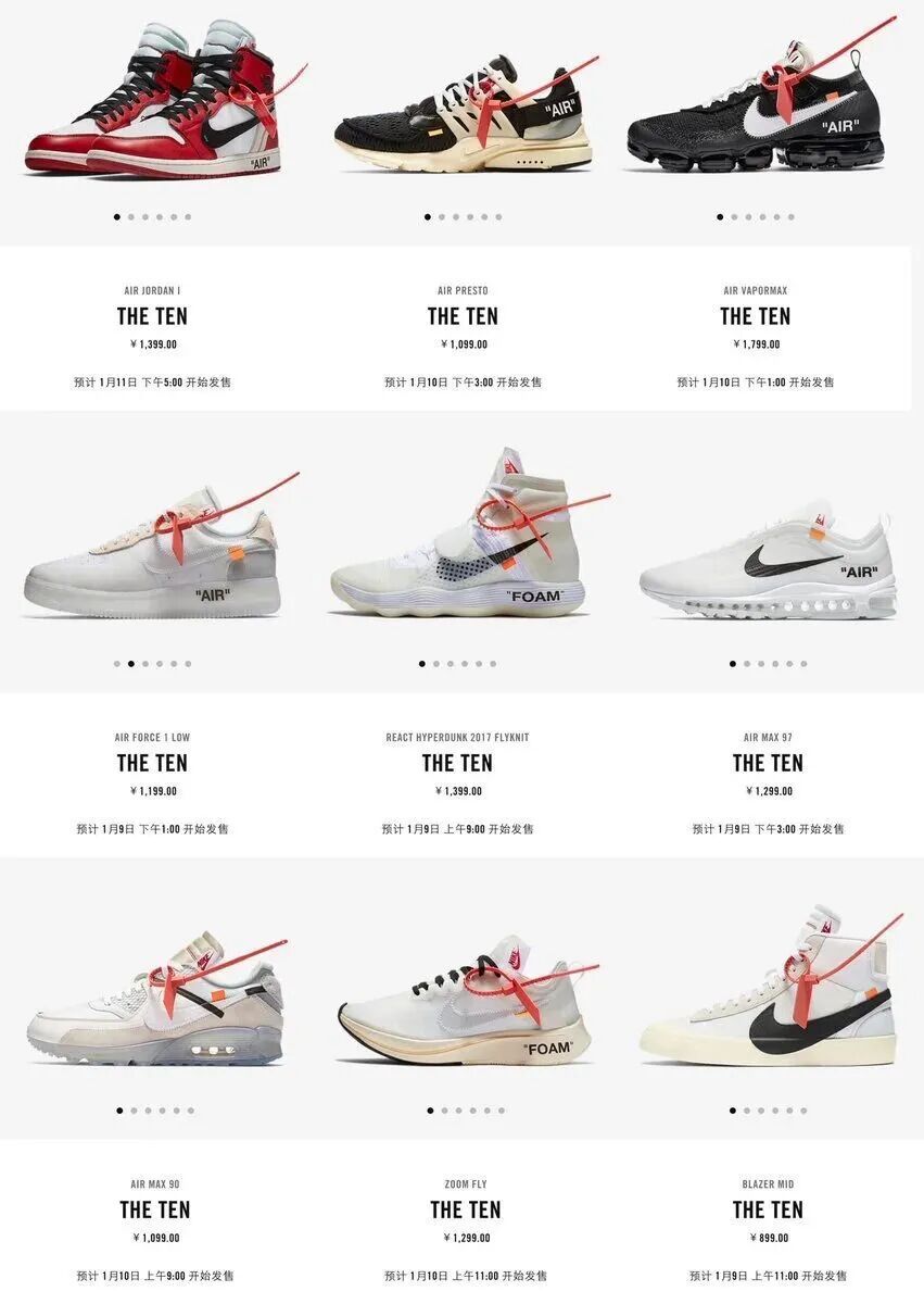 〓 2017年的「OFF-WHITE x Nike」The Ten 系列