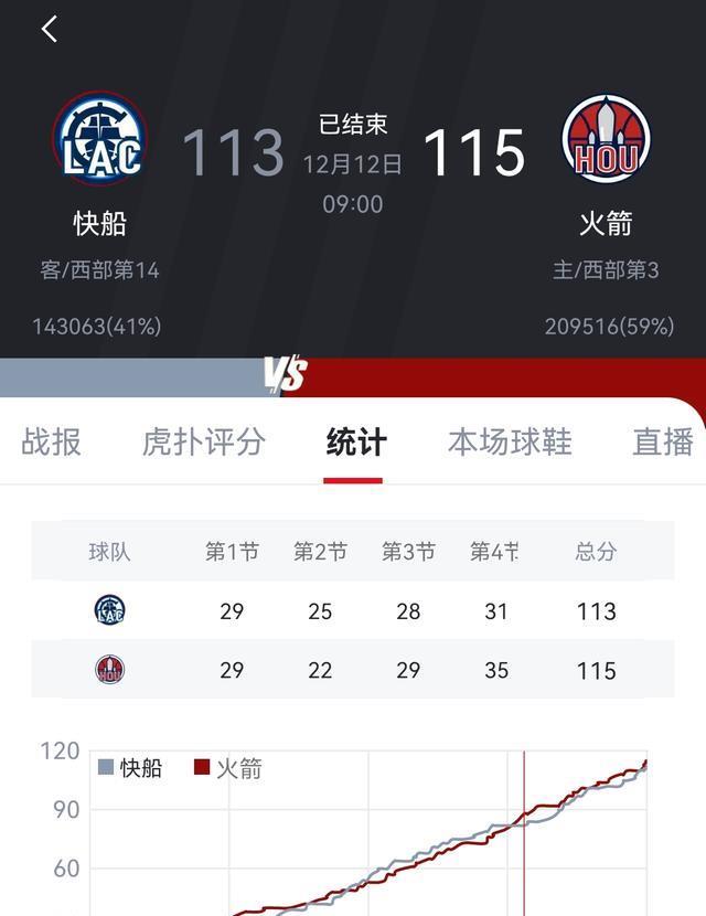 北京时间12月12日上午9点宏泰证券,25-26赛季NBA常规赛在休斯顿丰田中心打响,火箭主场迎战快船。经过四节鏖战,火箭以115-113险胜快船,巩固西部排名。